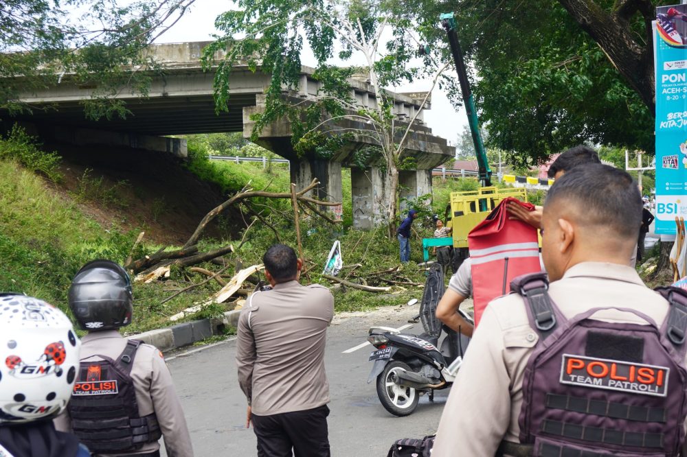 Fachrul Razi, Kasat Samapta Polresta Banda Aceh ketika ditemui di lokasi pohon tumbang yang menimpa badan jalan utama Banda Aceh-Medan mengatakan proses evakuasi dibantu dan dialokasikan kepada beberapa personil yang tergabung dari polsek setempat, Basarnas dan juga damkar. Sejauh ini terdapat tiga lokasi insiden yang menganggu lalu lintas jalan nasional.