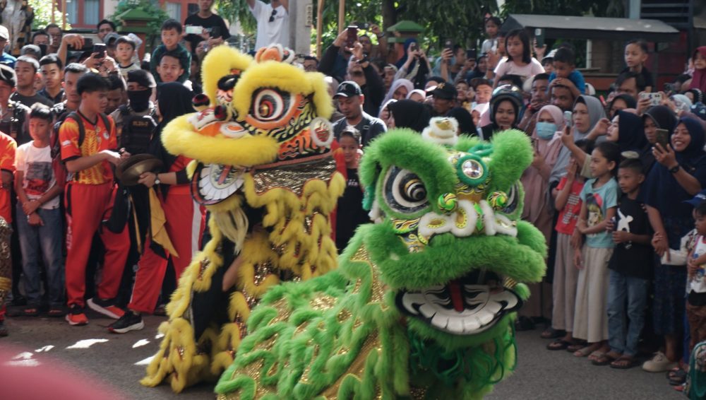 Penampilan barongsai tidak hanya disaksikan oleh masyarakat yang merayakan Imlek. Melainkan ratusan masyarakat Muslim juga menjadi penonton setia penampilan tarian singa ini. Tidak ada satu titik pun yang sepi penonton.
