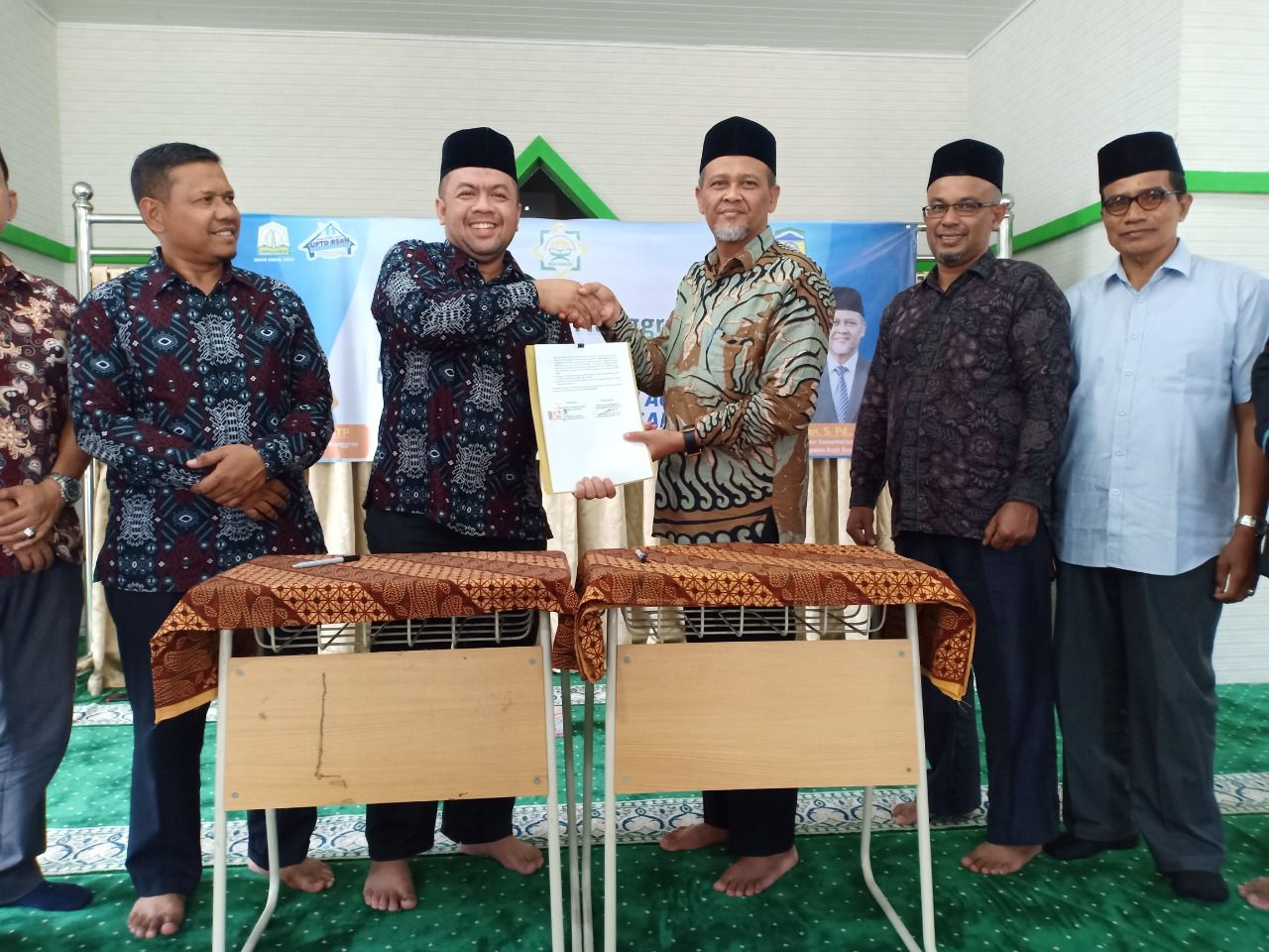 Penanda tanganan MoU bidang keagamaan itu di lakukan antara kepala UPTD RSAN Dinas Sosial Aceh Michael Oktaviano S.STP dengan Kakankemenag Aceh Besar H Salman SPd MAg yang di gelar di mushalla RSAN sekaligus launching berdirinya Taman Pendidikan Al Quran (TPQ) Aneuk Nanggroe. Kamis, 08/09/2022.