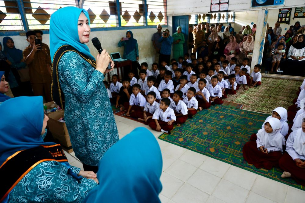 Kunjungan diawali di TK Negeri Seulanga Meuligoe Selatan di Kecamatan Tapaktuan. Di sana, Marlina meninjau langsung aktivitas bermain dan belajar anak-anak TK, sekaligus menyosialisasikan pola makan sehat berbasis B2SA, yakni Beragam, Bergizi, Seimbang, dan Aman.