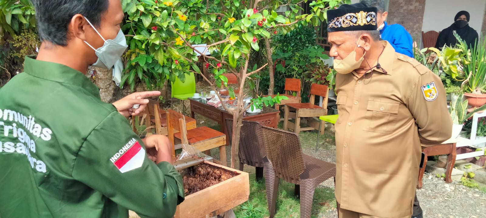 Banda Aceh – Wakil Wali Kota Banda Aceh Drs. H. Zainal Arifin melakukan kunjungan ke Gampong Bitai dalam rangka melihat langsung penangkaran lebah madu tanpa sengat trigona yang dikelola oleh Linot HJ, Senin (17/1/22).