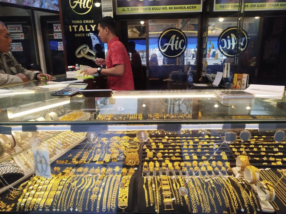 AcehAsia.com | Banda Aceh – Dafa salah satu pedagang emas di Toko Emas Italy yang berada di Jl. T. Chik Pante Kulu No. 88 Banda Aceh mengaku harga emas ke depannya akan menembus angka Rp6.500.000 per mayam (setara 3,33 gram). Hal tersebut dipengaruhi oleh merebaknya perang dagang antar Amerika Serikat dan China dengan tarif dagang sebesar 145% yang ditetapkan minggu lalu, namun naik hingga 245% dalam pekan ini.