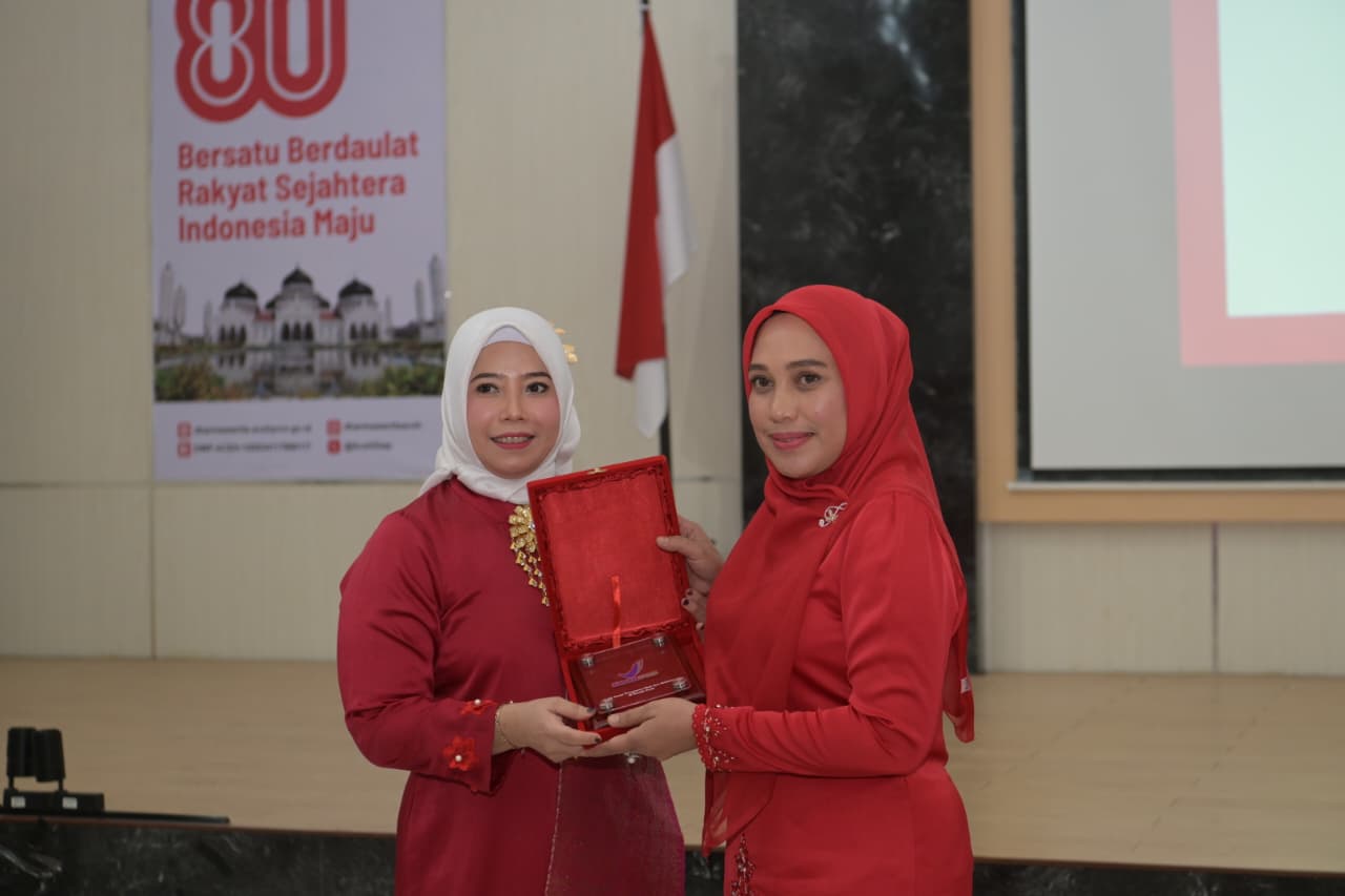 Dalam sambutannya, Ketua DWP Aceh, Malahayati M. Nasir menyampaikan bahwa pertemuan rutin kali ini sangat istimewa karena berlangsung masih dalam nuansa perayaan HUT ke-80 RI sekaligus 20 tahun perdamaian Aceh. Ia menyebutkan, selain untuk mempererat silaturahmi, acara ini merupakan wujud semangat dalam menjaga persatuan.