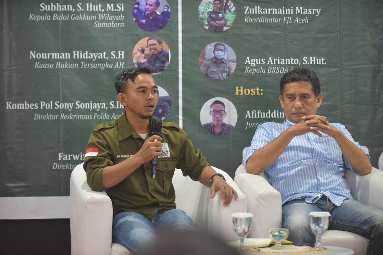 Koordinator FJL Aceh, Zulkarnaini Masry menyampaikan diskusi ini dilakukan sebagai wadah bagi lembaga terkait untuk dapat memberikan argumentasinya terkait penegakan hukum perdagangan kulit harimau tersebut.