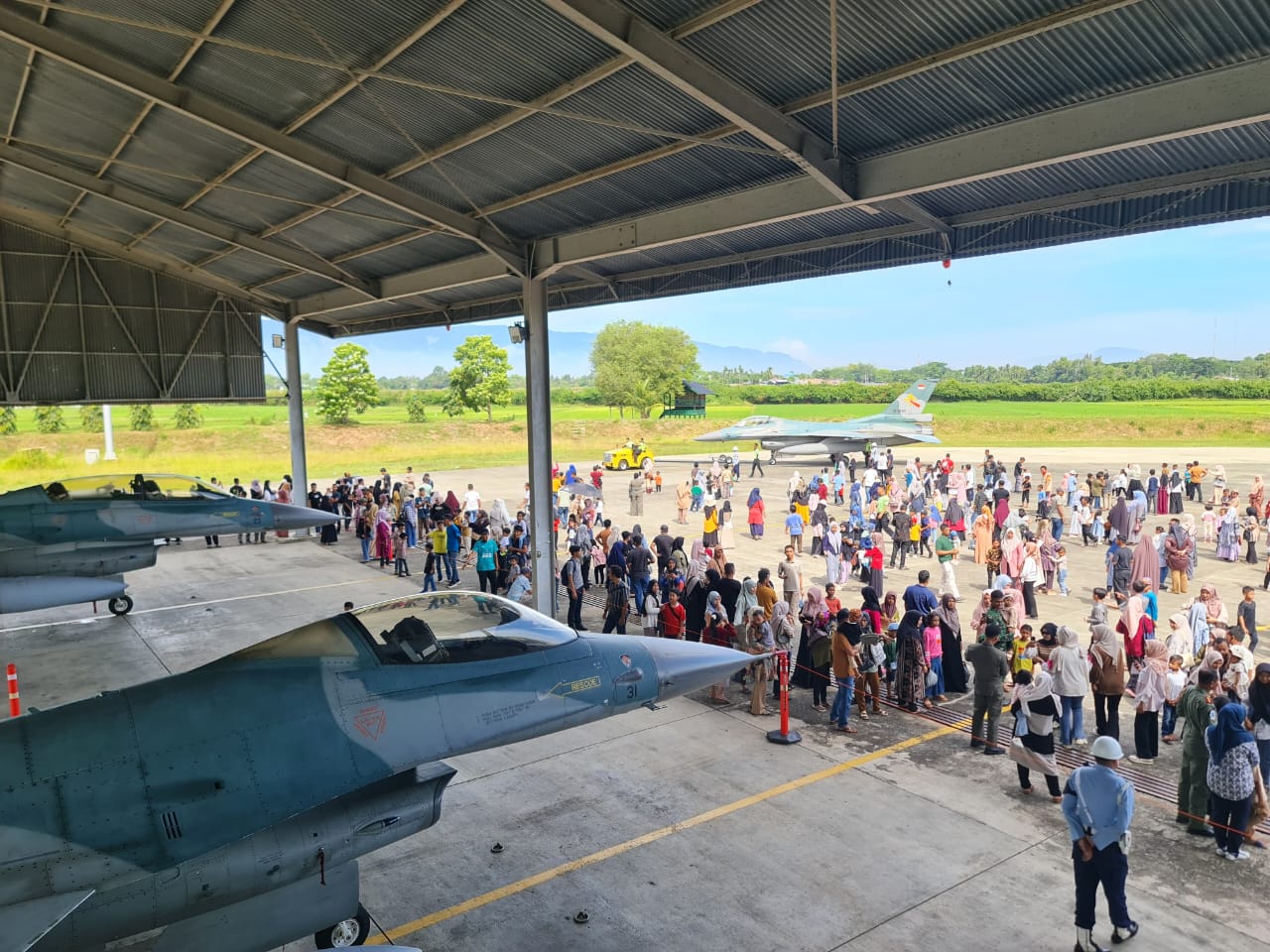 Anak-anak, pelajar, hingga orang tua tampak antusias mendekat, berfoto, dan bertanya langsung kepada para penerbang dan teknisi TNI AU yang dengan ramah menjelaskan fungsi dan kemampuan masing-masing pesawat. Suara kagum dan kekaguman pun terdengar dari para pengunjung yang selama beberapa hari terakhir hanya bisa menyaksikan F-16 bergemuruh di langit Aceh, kini bisa melihatnya dari dekat