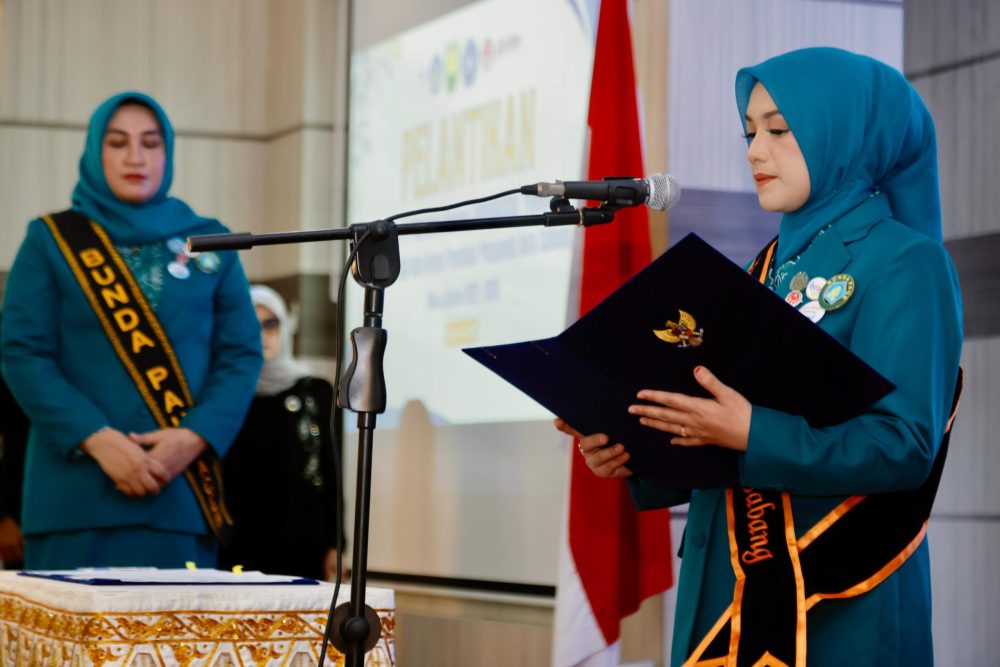 Acehasia.com | Sabang – Ketua Tim Penggerak PKK Aceh, Marlina Muzakir, melantik Nuri Zulkifli sebagai Ketua TP PKK Kota Sabang, Ketua Dekranasda, Forikan, Bunda PAUD dan Ketua Pembina Posyandu Kota Sabang masa jabatan 2025-2030, di Aula Kantor Wali Kota Sabang, Sabtu, (14/6/2025).