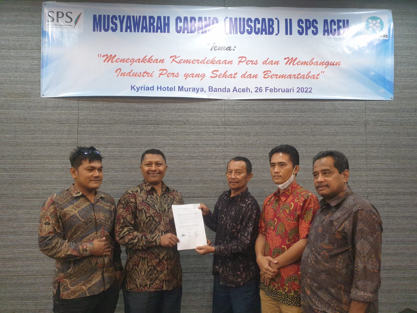 Banda Aceh – Mukhtaruddin terpilih secara aklamasi sebagai Ketua Serikat Perusahaan Pers (SPS) Aceh, periode 2022- 2026 Masehi dalam Muscab II SPS Aceh yang berlangsung di Kyriad Muraya Hotel Banda Aceh, Sabtu (26/2/22).