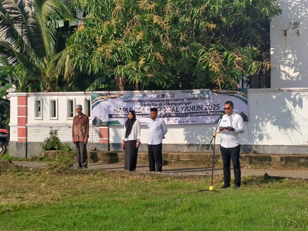 Kepala DPMG Kota Banda Aceh Ir. Muhammad Syaifuddin Ambia. ST MM mewakili Pj Walikota Banda Aceh menjadi Pembina Apel menyampaikan amanat bahwa Peringatan Hari Desa Nasional 2025 merupakan peringatan perdana yang dilakukan berdasarkan Keputusan Presiden RI Nomor 23 Tahun 2024.