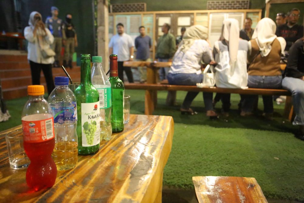Di salah satu kafe yang dilengkapi fasilitas karaoke di Jalan Ujong Pancu, Gampong Blang, 29 muda-mudi diciduk petugas berikut barang bukti minuman beralkohol. Mereka terdiri dari 12 wanita dan 17 pria, termasuk lima anggota TNI.