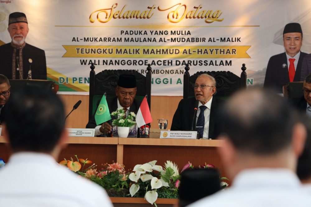 Medan – Dalam rangka memperkuat kedudukan dan kewenangan, Ketua Pengadilan Tinggi Agama Medan meminta dukungan Wali Nanggroe Aceh Paduka Yang Mulia Tgk. Malik Mahmud Al Haythar.