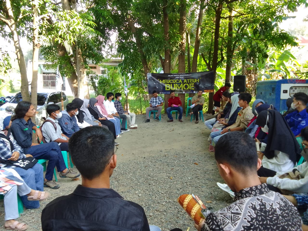Dalam peringatan Hari Bumi di Banda Aceh, WALHI Aceh mengusung tema “Bek Meucuca Ateuh Bumoe”. Tulisan itu menjadi latar belakang para orator saat berorasi pada peringatan Hari Bumi