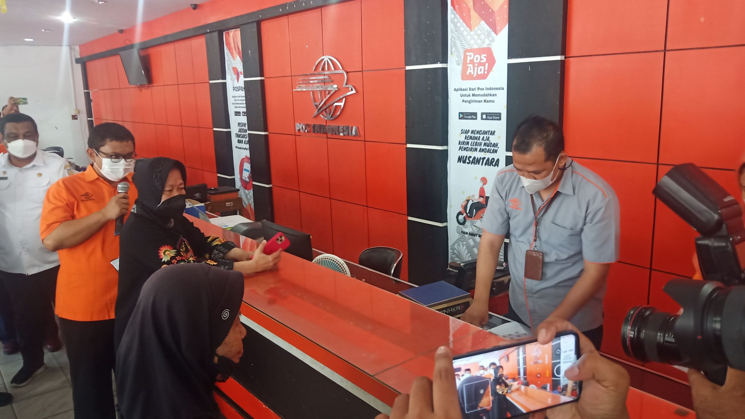 Banda Aceh – Menteri Sosial Republik Indonesia Tri Rismaharini, memantau penyaluran bantuan sosial (Bansos) berupa bantuan langsung tunai bahan bakar minyak (BLT BBM) di Kantor Pos Kuta Alam Banda Aceh, Rabu 14 September 2022. Penyaluran bantuan tersebut ditargetkan selesai pada minggu ini.