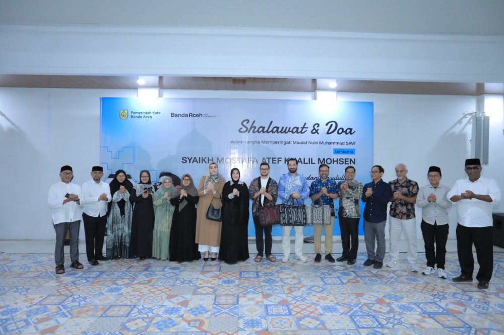 Banda Aceh – Lantunan syahdu sholawat bergema dari Aula Pendopo wali kota, Senin, (1/9/2025) malam. Wali Kota Banda Aceh, Illiza Sa’aduddin Djamal dan sejumlah tamu undangan mengumandangkan puji-pujian kepada Nabi Muhammad SAW mengikuti suara merdu munsyid ternama dari Mesir Syaikh Mostafa Atef Khalil Mohsen