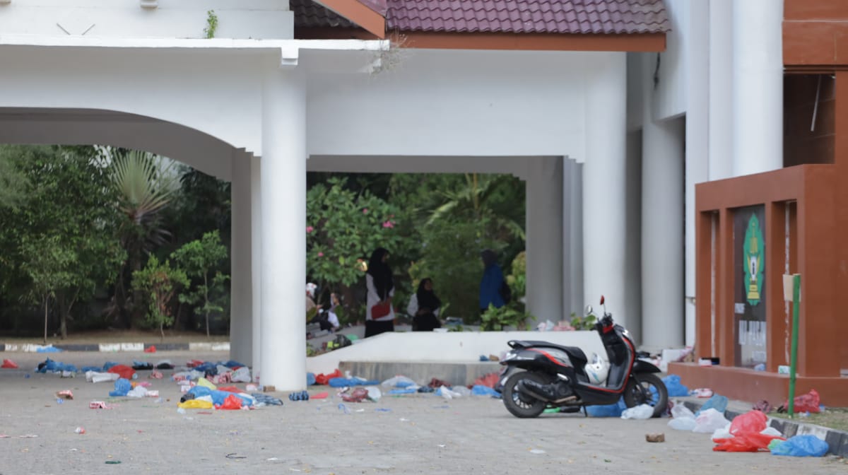 Tebaran sampah di depan Auditorim Ali Hasyimi Universitas Islam Negeri (UIN) Ar-Raniry sore itu memang tak elok dipandang. Seusai kegiatan Pengenalan Budaya Akademik Kampus (PBAK) UIN Ar-Raniry, sampah di halaman auditorium berhamburan. Untungnya, hembusan angin siang itu tidak terlalu kencang, sehingga hanya menyebabkan beberapa sampah plastik yang berterbangan.