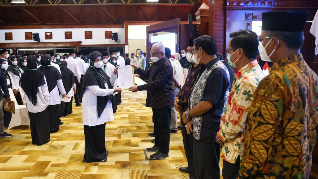 Banda Aceh – Sekretaris Daerah (Sekda) Aceh Taqwallah, bersama Asisten I dan Asisten III Sekda Aceh, Kepala BKN Regional XIII Aceh, Kepala Dinas pendidikan, Kepala BKA, Kepala Dinas Pendidikan, memberikan SK kepada 481 Pegawai P3K dari Banda Aceh, Aceh Besar, Sabang, Aceh Jaya, Pidie dan Pidie Jaya. Hadir dalam kegiatan itu Kepala Biro Administrasi Pimpinan Setda Aceh dan para Kepala Cabang Dinas dari masing-masing daerah.