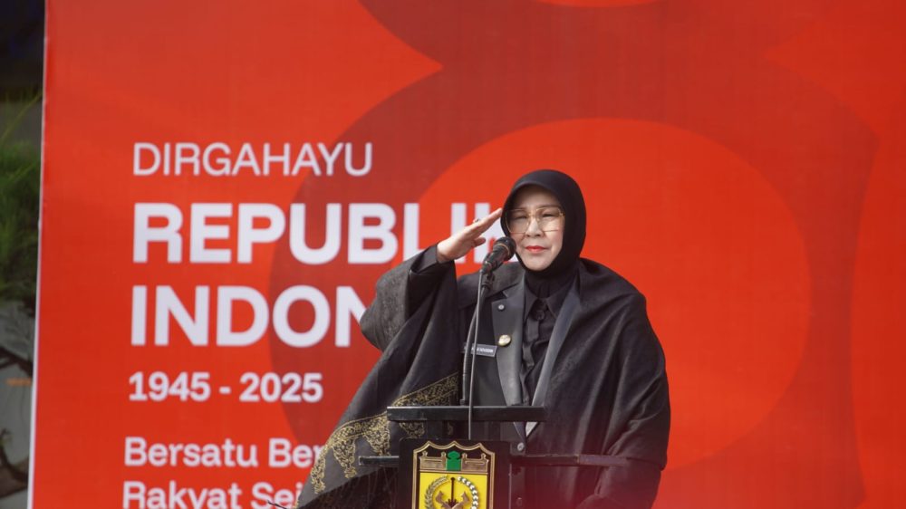 Banda Aceh- Wali Kota Banda Aceh Illiza Sa’aduddin Djamal memimpin langsung Apel Gabungan Pemerintah Kota Banda Aceh awal bulan Agustus 2025, di halaman balai kota, Senin (4/8/2025).